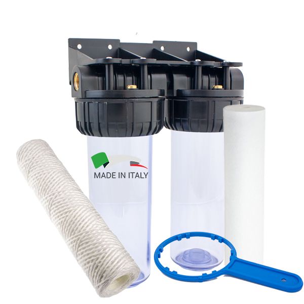 Φίλτρο νερού κεντρικής παροχής 1/2" διπλό 10" με φίλτρα 20μm, κλειδί και βάση PRIMATO ITA2BL12